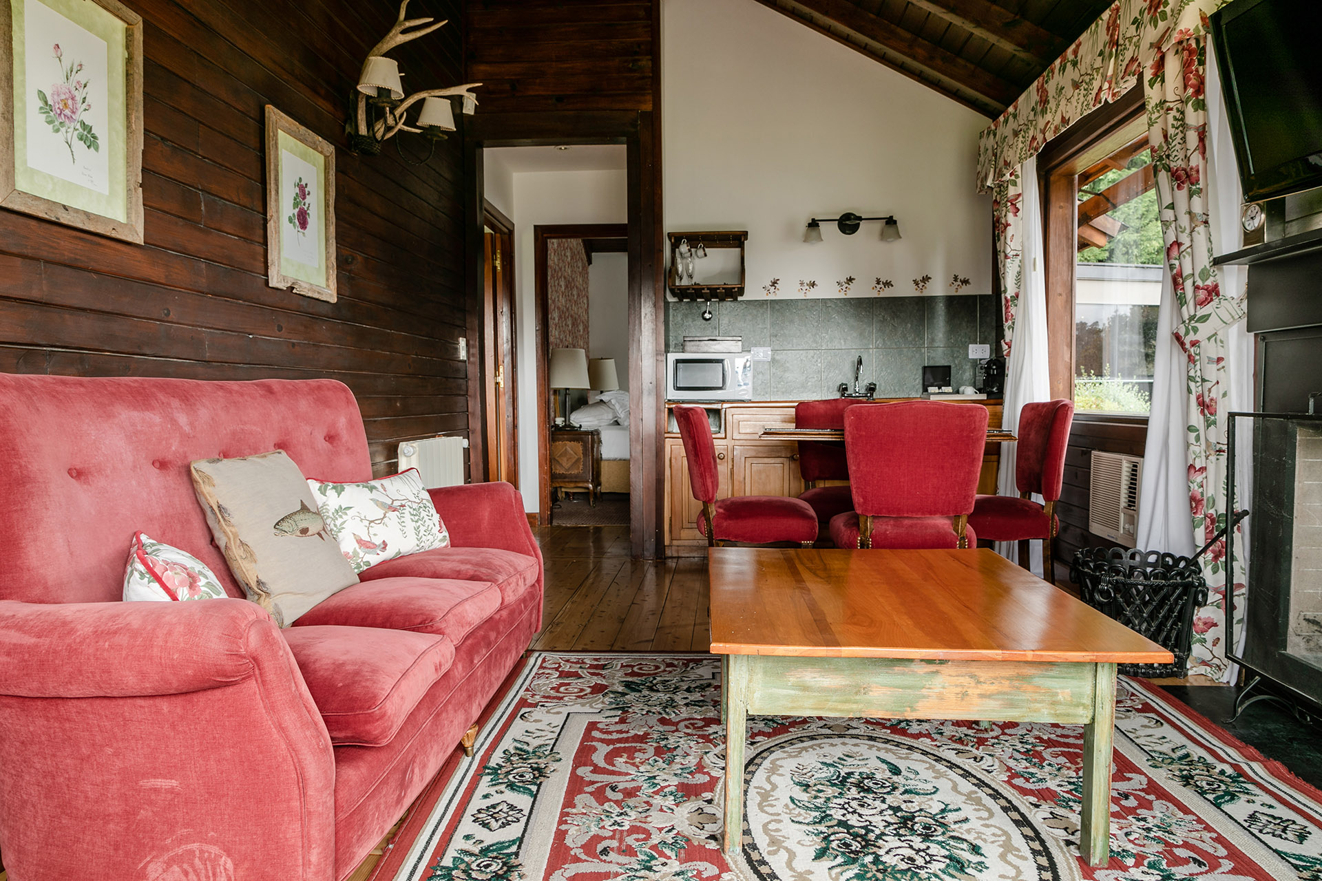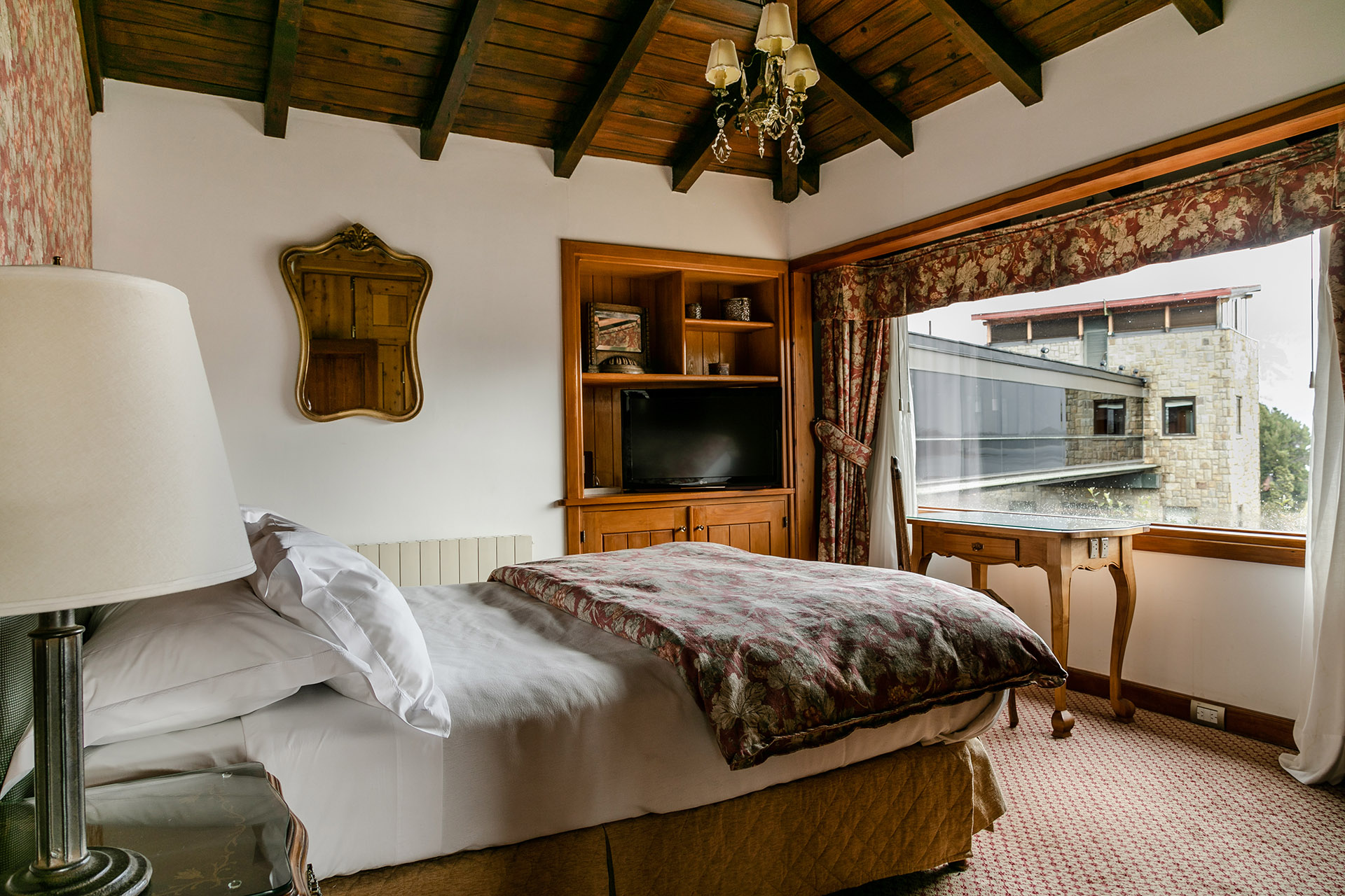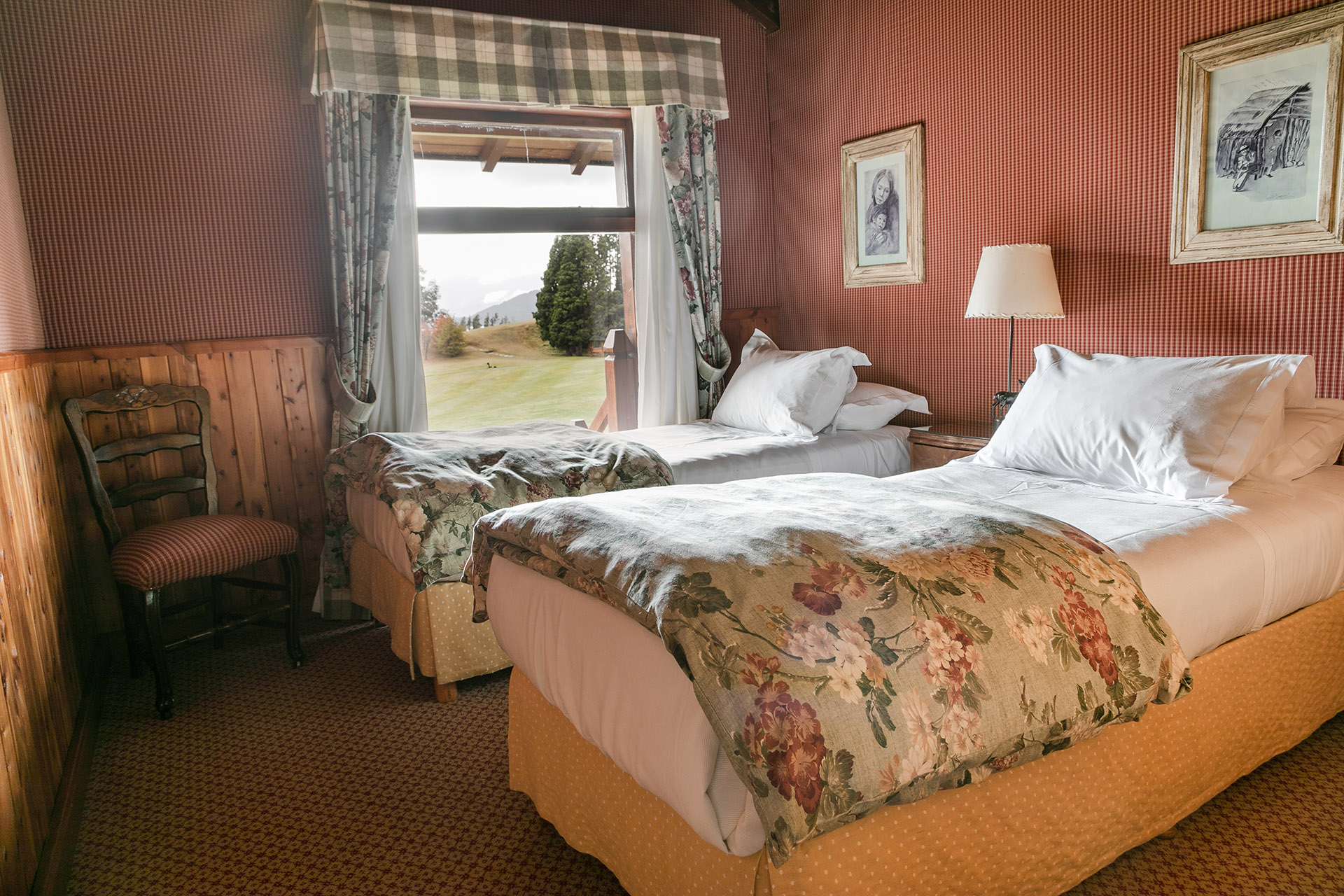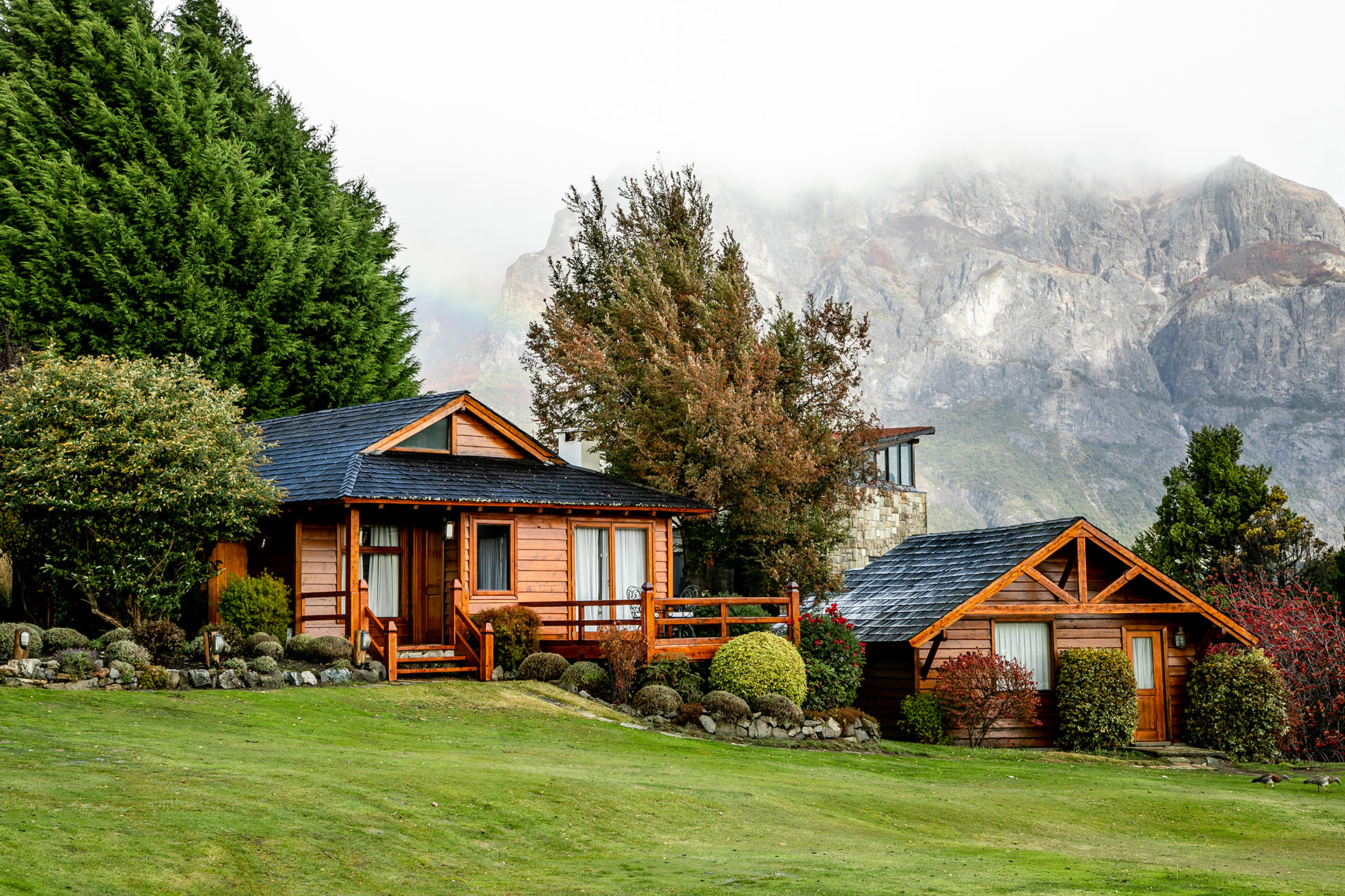 Overooking Moreno Lake and Mt. Tronador, it has two bedrooms, two bathrooms, living room with fireplace and deck. No air conditioning (approx. 570 sq. ft./ 53 m2).